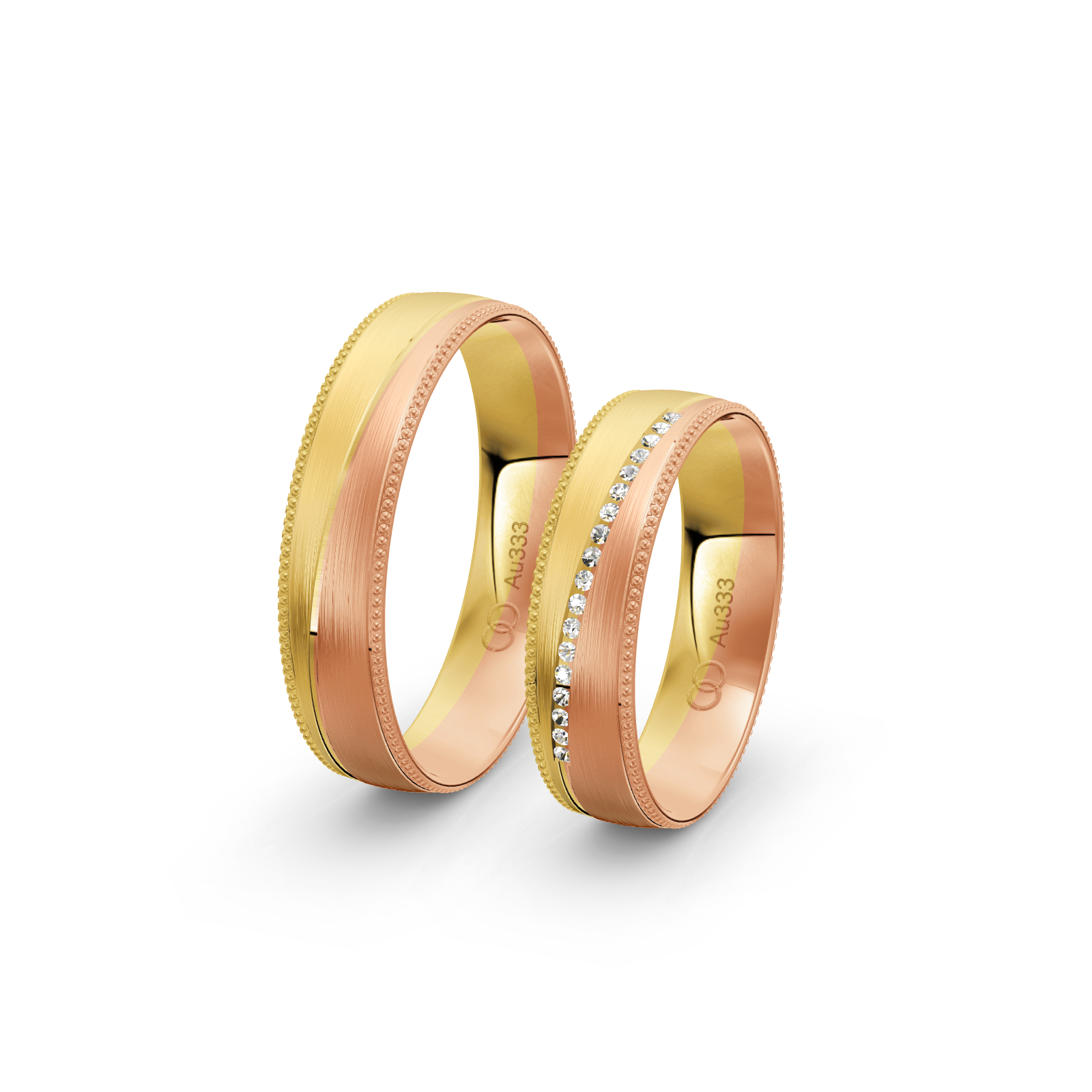 8 Ayar Renkli Altın Çift Alyans BMA-MK91-GNYY-2
